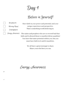 The daily contemplations introduce you to mindsets and concepts that form the foundation of a life of growth, flourishing, and manifestation. And the daily energy tracking reflections will increase your awareness of your energy, things that drain it and increase it, bringing you clarity on your path and helping you boost productivity.